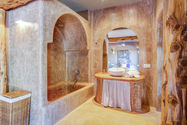 En la parte inferior hay una enorme ducha independiente con vistas a la piscina y acantilados.
